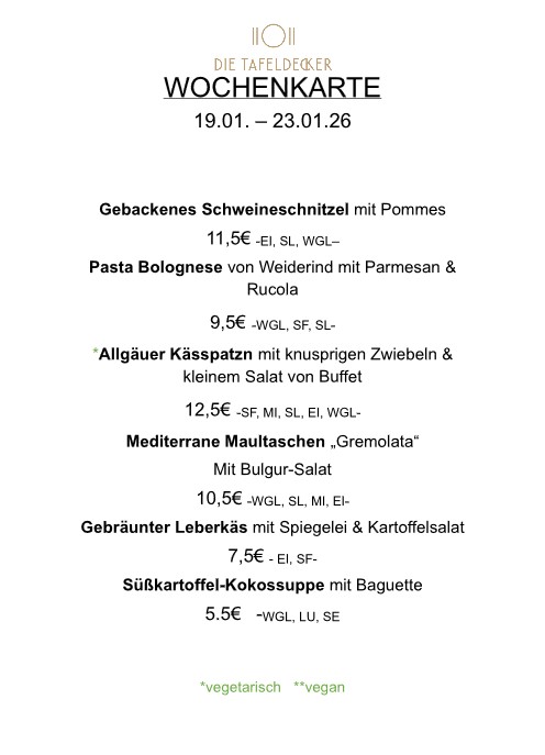Freitag 11:00 – 13:00 Uhr – Kleine Karte